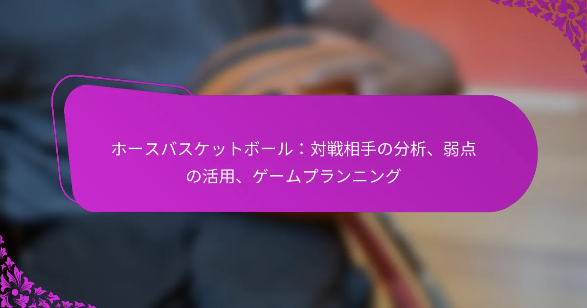 ホースバスケットボールにおいて、対戦相手の分析は、彼らの弱点を利用した効果的な戦略を開発するために重要です。観察技術、データ収集、ビデオ分析を活用することで、チームは対戦相手の傾向やゲームプレイのパターンについての洞察を得ることができます。この情報は、チームの強みを活かし、試合中のパフォーマンスと適応力を最大化するための構造化されたゲームプランの作成を可能にします。 ホースバスケットボールにおける対戦相手分析の効果的な方法は何ですか? ホースバスケットボールにおける対戦相手分析の効果的な方法は、観察技術、データ収集ツール、ビデオ分析の組み合わせを含みます。対戦相手の傾向を理解し、過去の対戦から得た洞察を活用することで、チームは弱点を利用し、パフォーマンスを向上させる戦略を開発できます。 ゲームプレイ中の観察技術 観察技術は、試合中の対戦相手のリアルタイム分析において重要です。コーチや選手は、選手のポジショニング、意思決定、コミュニケーションパターンなどの重要な側面に焦点を当てるべきです。対戦相手がプレッシャーの下でどのように反応するかを記録することで、彼らの強みと弱みについての貴重な洞察を得ることができます。 体系的なアプローチを用いることで、チームは観察すべき行動のチェックリストを作成できます。これには、対戦相手が特定の距離からどのくらいの頻度でシュートを打つかや、特定のプレイに対する防御戦略を追跡することが含まれるかもしれません。一貫した観察は、統計だけでは明らかでないトレンドを明らかにすることができます。 データ収集と分析ツール データ収集ツールは、対戦相手に関する定量的な洞察を得るために重要な役割を果たします。選手の動き、シュートの精度、得点効率を追跡するソフトウェアを利用することで、チームはパフォーマンスメトリクスを分析できます。これらのツールはしばしばデータの視覚的表現を提供し、パターンを特定しやすくします。 選手の動きとポジショニングを監視するための選手追跡システム。 シュート率やターンオーバーを評価するための統計分析ソフトウェア。 対戦相手の戦略やフォーメーションに関するデータを集約するスカウティングアプリ。 定性的な観察と定量的なデータを組み合わせることで、チームは対戦相手の包括的なプロファイルを作成し、ゲーム準備と戦略の策定を強化します。 対戦相手の傾向とパターンの特定 対戦相手の傾向を特定することは、試合中の彼らの習慣的な行動や戦略を分析することを含みます。これには、彼らの好むプレイ、防御のセットアップ、さまざまなゲーム状況に対する反応が含まれることがあります。これらのパターンを認識することで、チームは行動を予測し、それに応じて戦略を調整することができます。 チームは、対戦相手がプレッシャーの高い瞬間にどのように反応するかや、異なるクォーターでの得点パターンなど、一般的なシナリオに焦点を当てるべきです。この情報を集約することで、コーチは特定の弱点を利用するためのターゲット戦略を考案できます。 パフォーマンスレビューのためのビデオ分析の活用 ビデオ分析は、チームと対戦相手のパフォーマンスをレビューするための重要なツールです。試合を録画することで、チームはプレイをフレームごとに分解し、戦略と実行を詳細に検討することができます。この方法は、成功したプレイや改善が必要な領域を特定するのに役立ちます。 コーチは、ディフェンスの失敗やオフェンスの成功など、特定の瞬間を強調するためにビデオを使用し、これらの洞察を選手と共有できます。この視覚的フィードバックは、戦略の理解と記憶を高め、選手がゲームプレイに適応しやすくします。 過去の対戦からの洞察の収集 過去の対戦からの洞察は、現在の戦略と対戦相手分析に文脈を提供します。同じチームとの以前の試合をレビューすることで、彼らの戦術がどのように進化したか、過去に何が成功したか、何が失敗したかを明らかにできます。この歴史的データは、今後の試合に向けた準備にとって非常に貴重です。