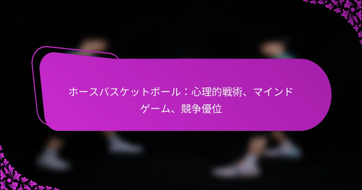 馬のバスケットボールにおいて、心理的戦術は競争優位を得るために不可欠であり、視覚化、ポジティブな自己対話、ストレス管理などのメンタル戦略を含みます。これらの技術は、個々のパフォーマンスを向上させるだけでなく、対戦相手の認識や意思決定を操作することによってチームのダイナミクスにも影響を与えます。これらのマインドゲームをマスターすることで、選手は集中力、自信、全体的なゲーム戦略を大幅に向上させることができます。 馬のバスケットボールにおける心理的戦術とは? 馬のバスケットボールにおける心理的戦術は、選手が競争優位を得るために使用するメンタル戦略を含みます。これらの戦術には、視覚化、ポジティブな自己対話、ボディランゲージの分析、ストレス管理、メンタルゴール設定が含まれ、すべてがゲーム中のパフォーマンスと集中力を向上させることを目的としています。 パフォーマンス向上のための視覚化技術 視覚化は、選手がゲームで行動や戦略を実行する前にメンタルリハーサルを行う強力な技術です。この練習は、メンタルブループリントを作成し、選手がシナリオを予測し、効果的に反応できるようにします。成功したプレイを鮮明に想像することで、アスリートは自信を高め、不安を軽減することができます。 視覚化を効果的に使用するためには、選手は静かな場所を見つけ、目を閉じ、シュートやパスなどの特定のスキルを正確に実行している自分を思い描く必要があります。観客の声やボールの感触などの感覚的な詳細を取り入れることで、体験を向上させることができます。この技術を定期的に練習することで、実際のゲーム中のパフォーマンスが向上する可能性があります。 自信を高めるためのポジティブな自己対話戦略 ポジティブな自己対話は、自信に満ちたマインドセットを育むためにアファメーションや励ましのフレーズを使用することを含みます。この技術は、競技中に生じる可能性のあるネガティブな思考に対抗するのに役立ちます。自己疑念をポジティブな言葉に置き換えることで、アスリートは集中力とモチベーションを維持できます。 効果的な自己対話の例には、「私はできる」や「このプレッシャーに対処できる」といったフレーズが含まれます。選手は、特にゲームの前や最中にこれらのアファメーションを定期的に練習し、ポジティブなメンタル状態を強化する必要があります。ネガティブな自己対話は自信やパフォーマンスを損なう可能性があるため、避けることが重要です。 戦術的優位を得るための対戦相手のボディランゲージを読む 対戦相手のボディランゲージを理解することで、ゲーム中の彼らの意図や感情について貴重な洞察を得ることができます。選手は、姿勢、表情、動きなどの手がかりを観察することで、行動を予測し、それに応じて戦略を調整できます。この認識は、プレッシャーのかかる状況で戦術的な優位をもたらすことがあります。 注意すべき主要なボディランゲージの信号には、リラックスした姿勢(自信を示す可能性がある)や緊張した筋肉(不安を示唆する)があります。これらの手がかりを読み取る能力を磨くことで、選手は対戦相手をプレスするタイミングや控えるタイミングなど、より情報に基づいた決定を下すことができます。 競技中のストレス管理技術 ストレスを管理することは、馬のバスケットボールでピークパフォーマンスを維持するために不可欠です。深呼吸、マインドフルネス、漸進的筋弛緩などの技術は、選手がプレッシャーの中で冷静さと集中力を保つのに役立ちます。これらの方法は、不安を軽減し、ゲームの重要な瞬間に集中力を高めます。 選手は、特にトレーニングセッションでこれらのストレス管理技術を定期的に練習する必要があります。たとえば、フリースローの前に数回深呼吸をすることで、心を落ち着け、緊張を和らげることができます。ストレスを管理するための個人的なルーチンを開発することで、競技中の全体的なパフォーマンスが向上する可能性があります。 集中力向上のためのメンタルゴール設定 メンタルゴール設定は、集中力とモチベーションを高めるために特定の測定可能な目標を設定する戦略です。明確な目標を設定することで、選手は努力を集中させ、ゲーム中ずっと集中力を維持できます。この練習は、進捗を追跡し、達成感を強化するのに役立ちます。 効果的なメンタルゴールは現実的で達成可能であるべきで、たとえば、シュート精度を特定のパーセンテージ向上させることや、特定のプレイを成功裏に実行することなどがあります。選手は、目標が関連性を持ち、挑戦的であることを確認するために、定期的に目標を見直し、調整する必要があります。この継続的なプロセスは、成長マインドセットを育み、パフォーマンスの継続的な向上を促します。 マインドゲームは馬のバスケットボールのパフォーマンスにどのように影響する